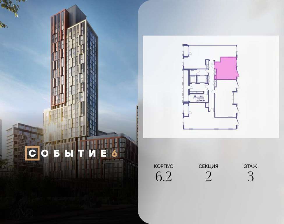 Продаётся квартира-студия от застройщика: общая площадь 34.40 м, жилая 20.70 м, кухня 5.00 м, 3-й этаж, жилой квартал «Событие-6», корпус 2 (секция 2) Срок сдачи: 1 квартал 2029 года.