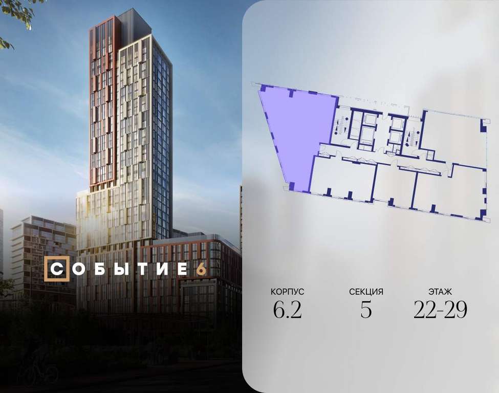 Продаётся 4-комнатная квартира от застройщика: общая площадь 130.90 м, жилая 59.90 м, кухня 28.20 м, 29-й этаж, жилой квартал «Событие-6», корпус 2 (секция 5) Срок сдачи: 1 квартал 2029 года.