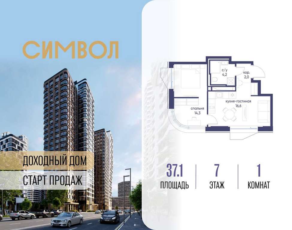Продается 1-комнатная квартира от застройщика: общая площадь 37.10 м, жилая 14.30 м, кухня 16.60 м, 7-й этаж, жилой квартал «Гордость», корпус 40 (секция 1) . Срок сдачи: 2 квартал 2029 года.