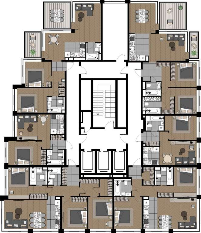 Квартиры с просторными террасами - выход на свежий воздух прямо из дома, гармония природы и городской роскоши.