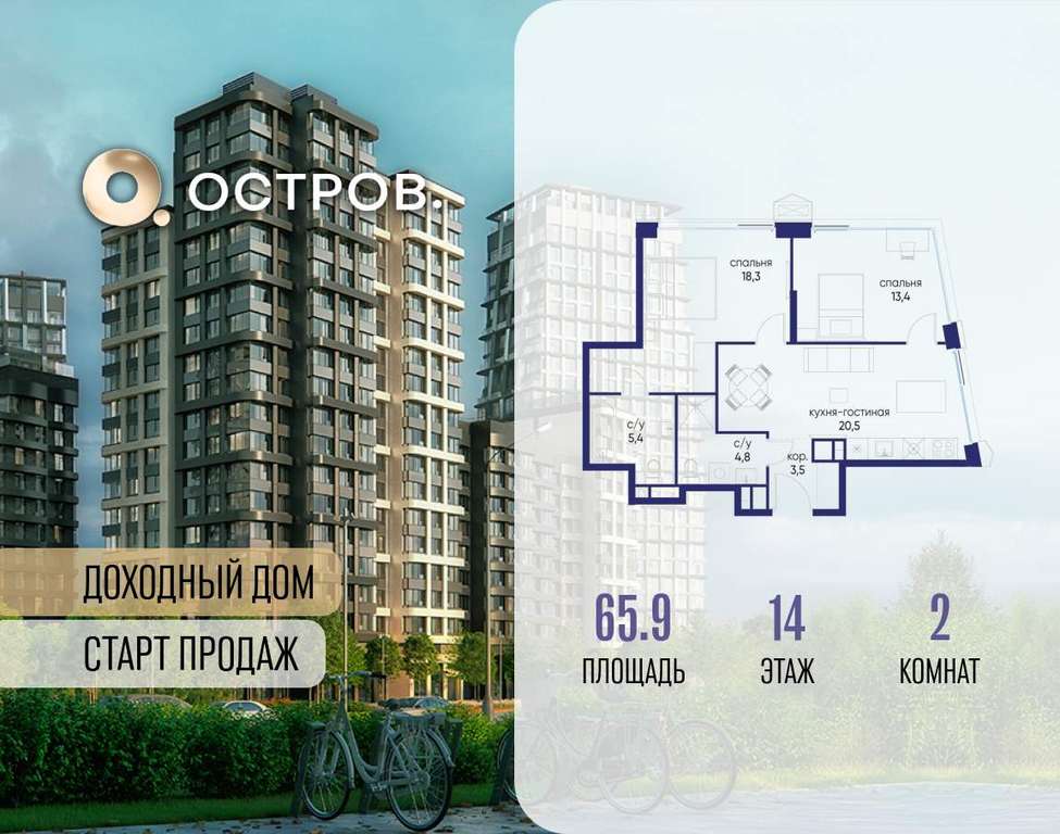 Продаётся 2-комн. квартира от застройщика: общая площадь 65.90 м, жилая 31.70 м, кухня 20.50 м, 14-й этаж, жилой квартал «Остров 14», корпус 6 (секция 1) . Срок сдачи: 2 квартал 2029 года.