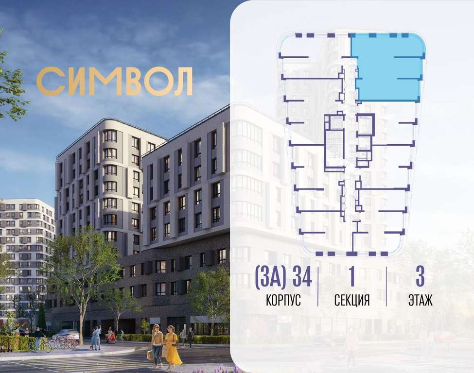 Продается 3-комнатная квартира от застройщика: общая площадь 91.10 м, жилая 42.60 м, кухня 17.60 м, 3-й этаж, жилой квартал «Вдохновение», корпус 34 (секция 1) . Срок сдачи: 4 квартал 2027 года.