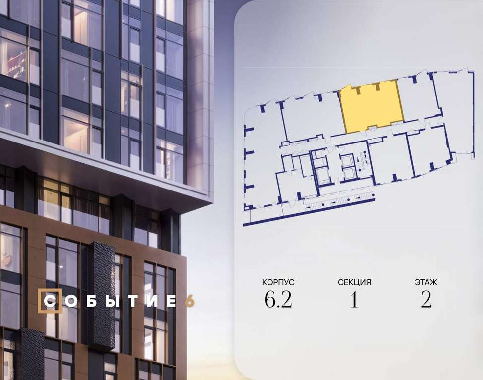 Продаётся 2-комнатная квартира от застройщика: общая площадь 73.00 м, жилая 31.40 м, кухня 24.40 м, 2-й этаж, жилой квартал «Событие-6», корпус 2 (секция 1) Срок сдачи: 4 квартал 2029 года.