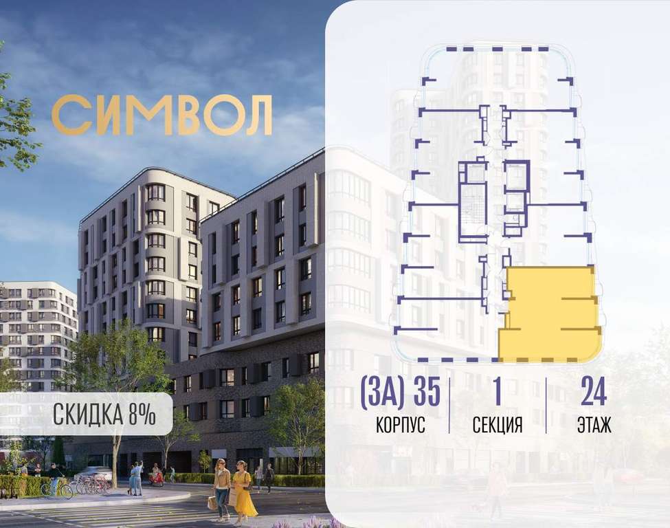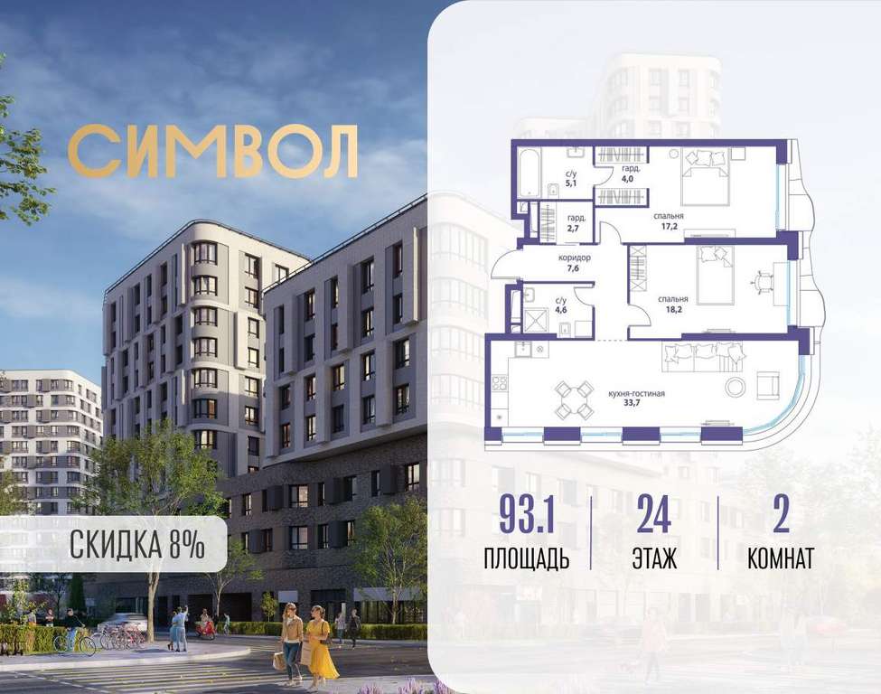 Продается 2-комнатная квартира от застройщика: общая площадь 93.10 м, жилая 35.40 м, кухня 33.70 м, 24-й этаж, жилой квартал «Вдохновение», корпус 35 (секция 1) . Срок сдачи: 4 квартал 2027 года.