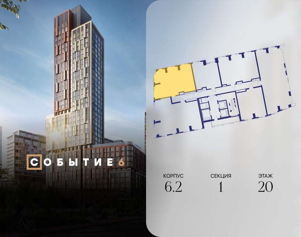Продаётся 2-комнатная квартира от застройщика: общая площадь 74.60 м, жилая 28.40 м, кухня 26.30 м, 20-й этаж, жилой квартал «Событие-6», корпус 2 (секция 1) Срок сдачи: 1 квартал 2029 года.