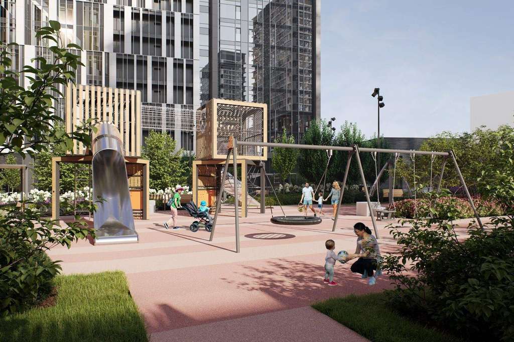 Внутренний двор - настоящее продолжение вашего дома: закрытая охраняемая территория без машин, развивающие детские площадки, воркауты-зоны для тех, кто хочет быть в форме, площади для праздников и посиделок с соседями.