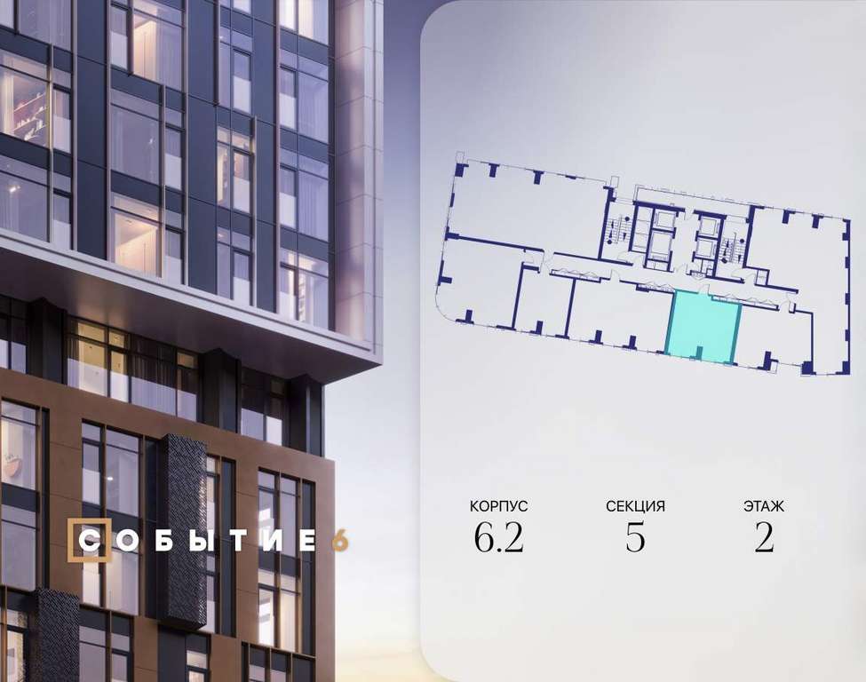 Продаётся 1-комнатная квартира от застройщика: общая площадь 41.10 м, жилая 14.60 м, кухня 19.50 м, 2-й этаж, жилой квартал «Событие-6», корпус 2 (секция 5) Срок сдачи: 4 квартал 2029 года.