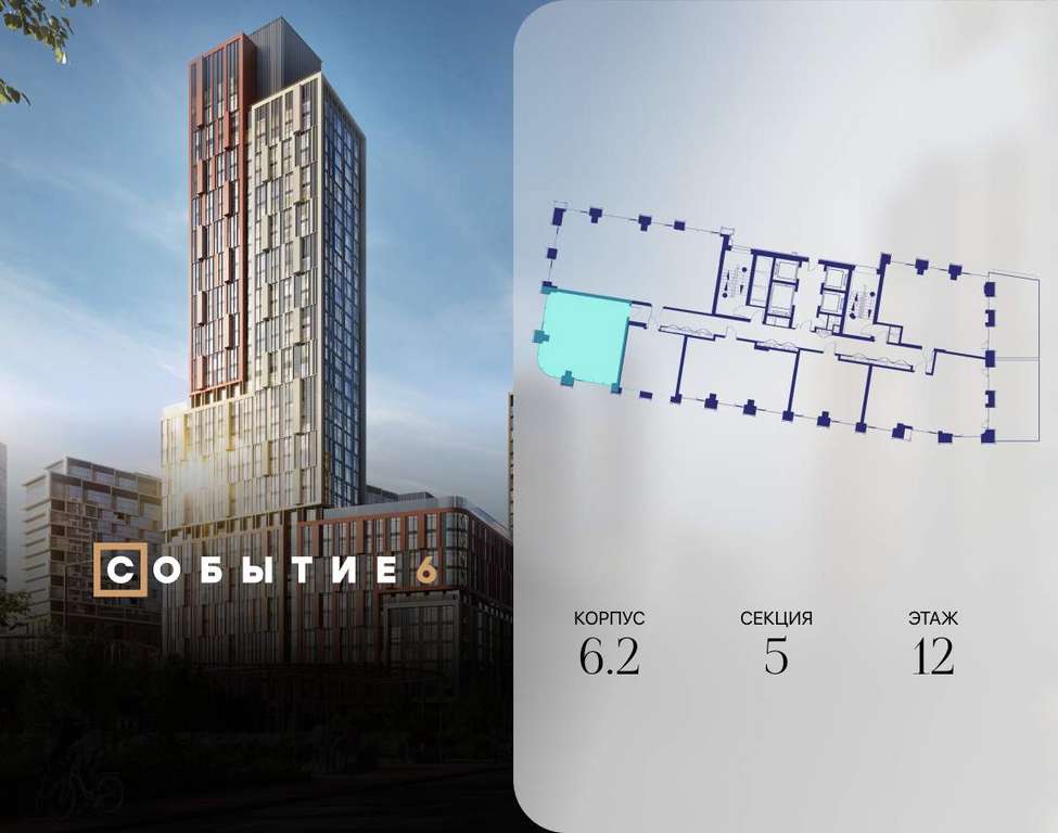 Продаётся 1-комнатная квартира от застройщика: общая площадь 56.20 м, жилая 14.80 м, кухня 27.10 м, 12-й этаж, жилой квартал «Событие-6», корпус 2 (секция 5) Срок сдачи: 1 квартал 2029 года.