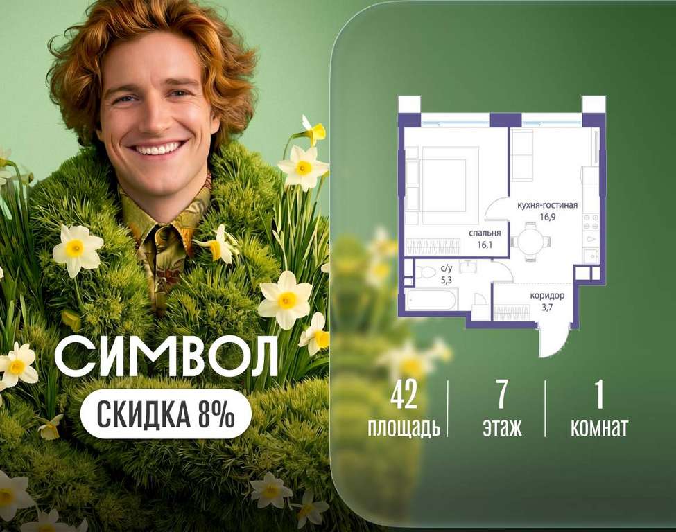 Продается 1-комнатная квартира от застройщика: общая площадь 42.00 м, жилая 16.10 м, кухня 16.90 м, 7-й этаж, жилой квартал «Гордость», корпус 36 (секция 5) . Срок сдачи: 2 квартал 2029 года.