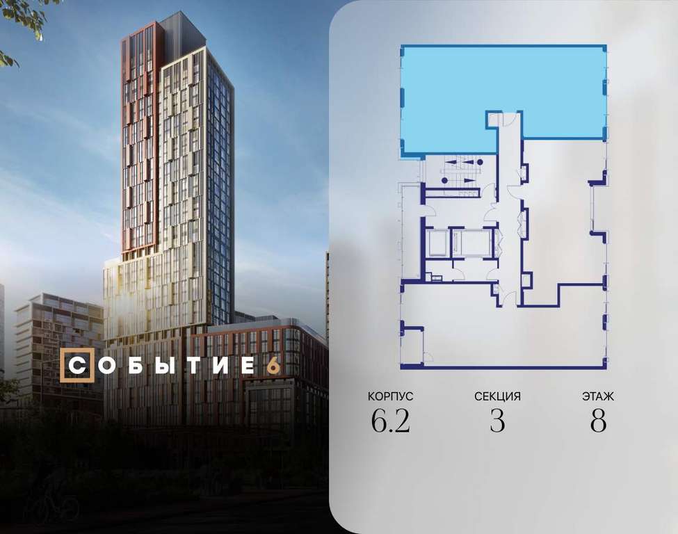 Продаётся 3-комнатная квартира от застройщика: общая площадь 102.70 м, жилая 42.40 м, кухня 28.40 м, 8-й этаж, жилой квартал «Событие-6», корпус 2 (секция 3) Срок сдачи: 1 квартал 2029 года.