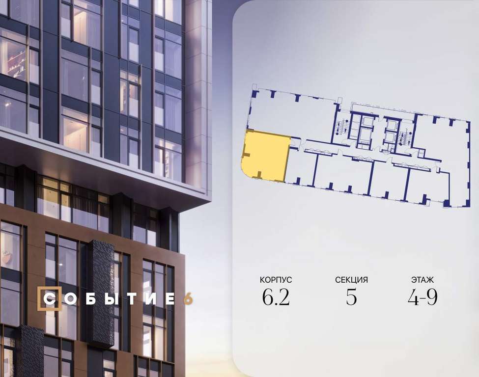 Продаётся 2-комнатная квартира от застройщика: общая площадь 64.30 м, жилая 26.30 м, кухня 20.60 м, 6-й этаж, жилой квартал «Событие-6», корпус 2 (секция 5) Срок сдачи: 4 квартал 2029 года.
