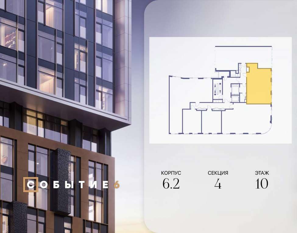 Продаётся 2-комнатная квартира от застройщика: общая площадь 64.10 м, жилая 27.60 м, кухня 21.50 м, 10-й этаж, жилой квартал «Событие-6», корпус 2 (секция 4) Срок сдачи: 4 квартал 2029 года.