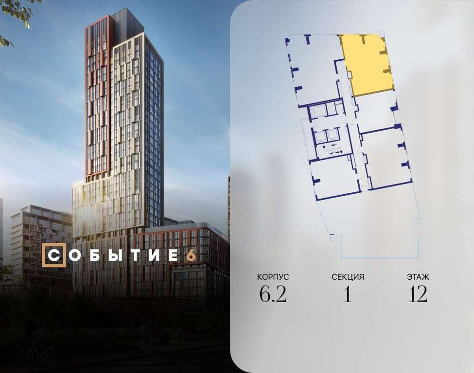 Продаётся 2-комнатная квартира от застройщика: общая площадь 74.20 м, жилая 28.60 м, кухня 26.40 м, 12-й этаж, жилой квартал «Событие-6», корпус 2 (секция 1) Срок сдачи: 1 квартал 2029 года.
