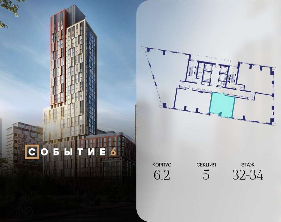 Продаётся 1-комнатная квартира от застройщика: общая площадь 38.80 м, жилая 14.90 м, кухня 16.00 м, 34-й этаж, жилой квартал «Событие-6», корпус 2 (секция 5) Срок сдачи: 1 квартал 2029 года.