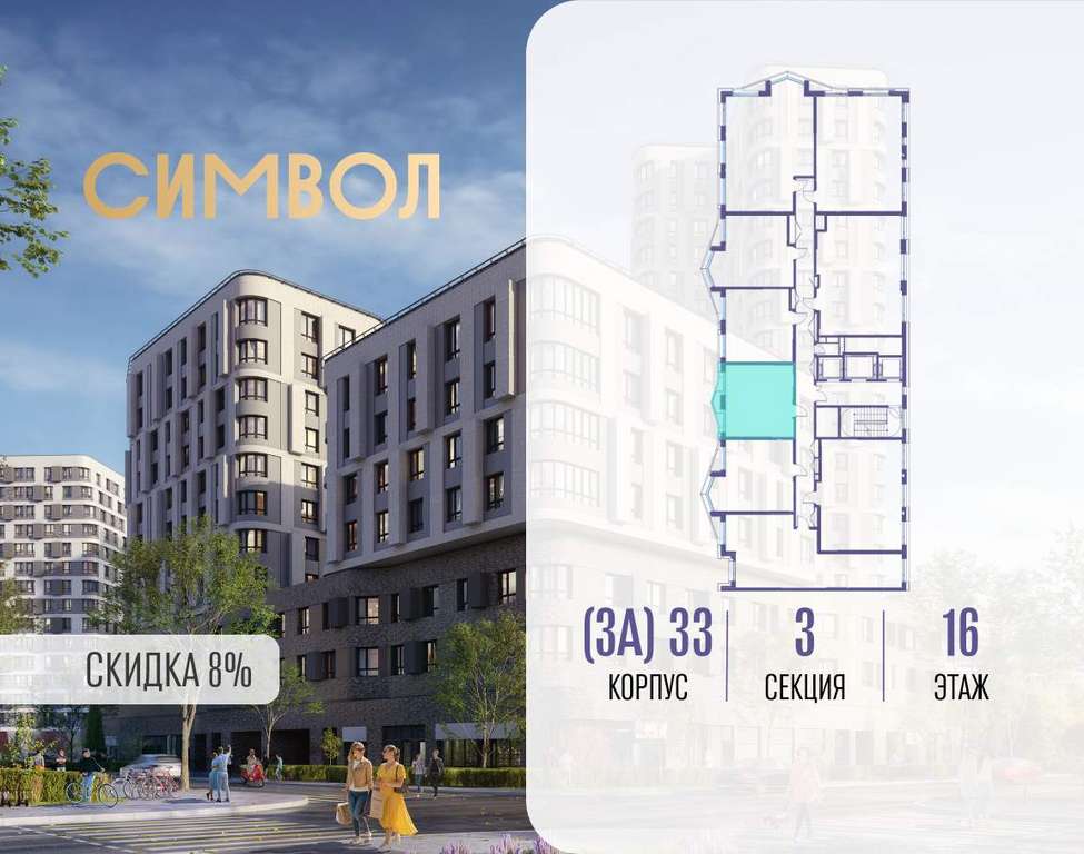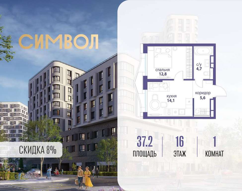 Продается 1-комнатная квартира от застройщика: общая площадь 37.20 м, жилая 12.80 м, кухня 14.10 м, 16-й этаж, жилой квартал «Вдохновение», корпус 33 (секция 3) . Срок сдачи: 4 квартал 2027 года.