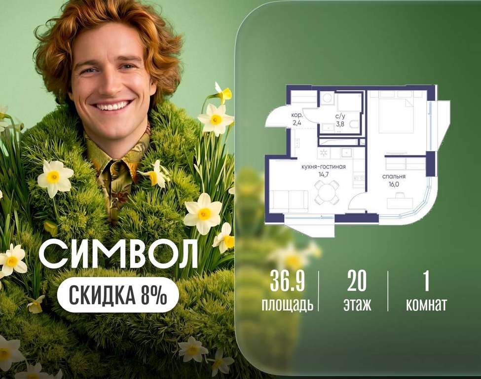 Продается 1-комнатная квартира от застройщика: общая площадь 36.90 м, жилая 16.00 м, кухня 14.70 м, 20-й этаж, жилой квартал «Гордость», корпус 40 (секция 1) . Срок сдачи: 2 квартал 2029 года.