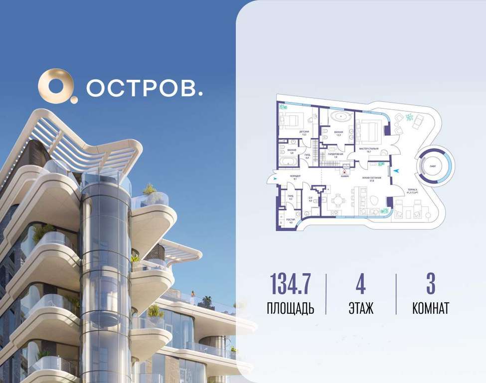 Продаётся 3-комн. квартира от застройщика: общая площадь 134.70 м, жилая 29.90 м, кухня 37.80 м, 4-й этаж, жилой квартал «Остров 10», (секция 1) . Срок сдачи: 2 квартал 2026 года.