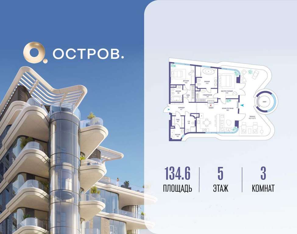 Продаётся 3-комн. квартира от застройщика: общая площадь 134.60 м, жилая 30.60 м, кухня 36.30 м, 5-й этаж, жилой квартал «Остров 10», (секция 1) . Срок сдачи: 2 квартал 2026 года.