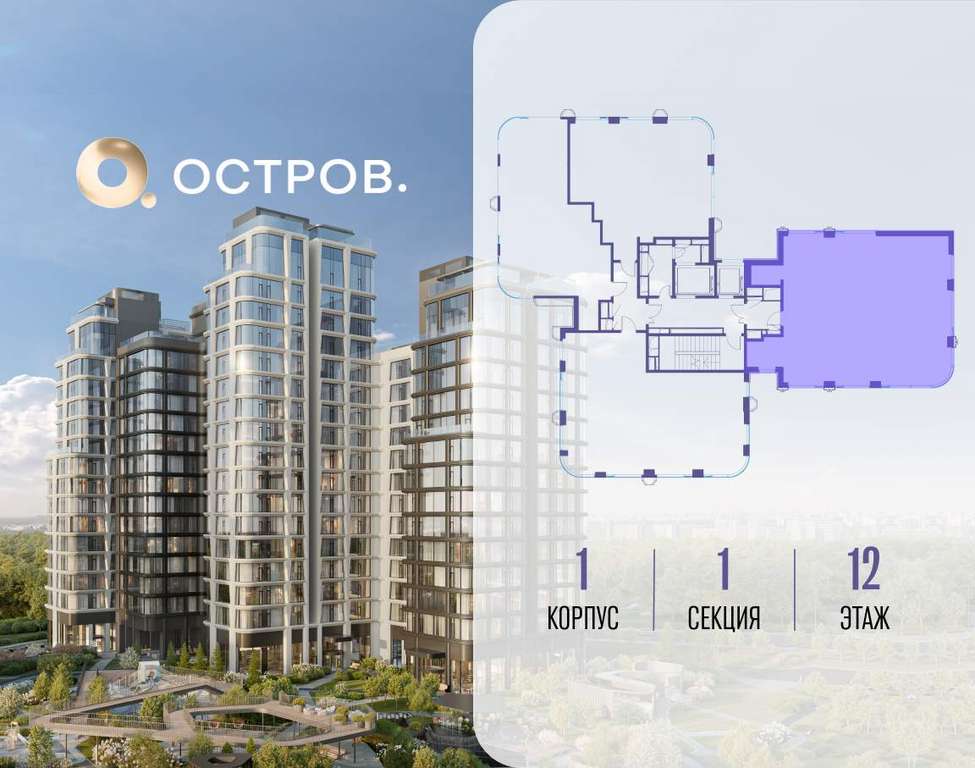 Продаётся 4-комн. квартира от застройщика: общая площадь 140.90 м, жилая 55.90 м, кухня 42.60 м, 12-й этаж, жилой квартал «Остров 12», корпус 1 (секция 1) . Срок сдачи: 1 квартал 2029 года.