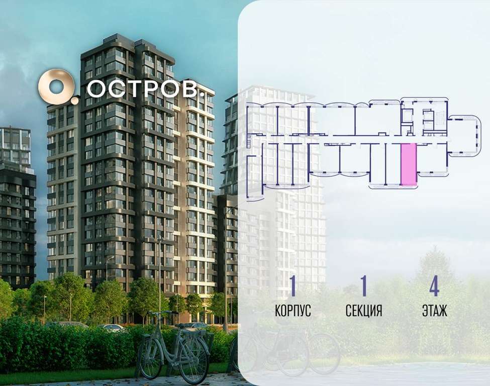 Продаётся квартира от застройщика: общая площадь 28.00 м, жилая 15.40 м, кухня 5.00 м, 4-й этаж, жилой квартал «Остров 14», корпус 1 (секция 1) . Срок сдачи: 2 квартал 2029 года.