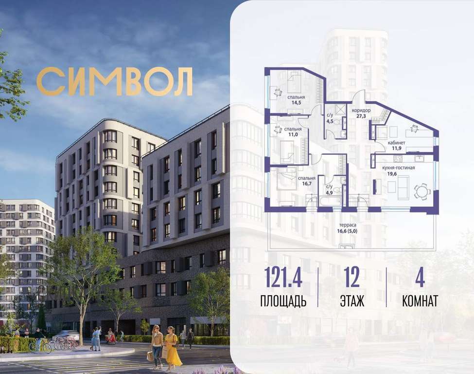 Продается 4-комнатная квартира от застройщика: общая площадь 121.40 м, жилая 54.10 м, кухня 19.60 м, 12-й этаж, жилой квартал «Вдохновение», корпус 29 (секция 4) . Срок сдачи: 4 квартал 2025 года.
