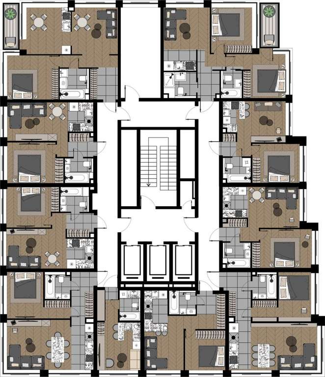 Квартиры с просторными террасами - выход на свежий воздух прямо из дома, гармония природы и городской роскоши.