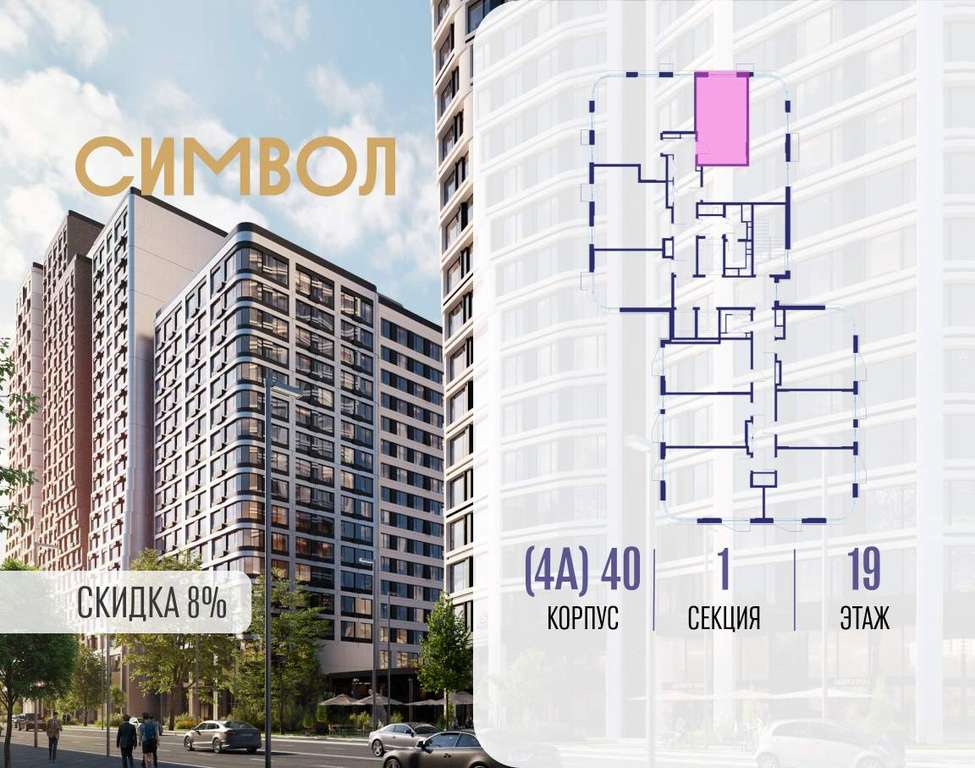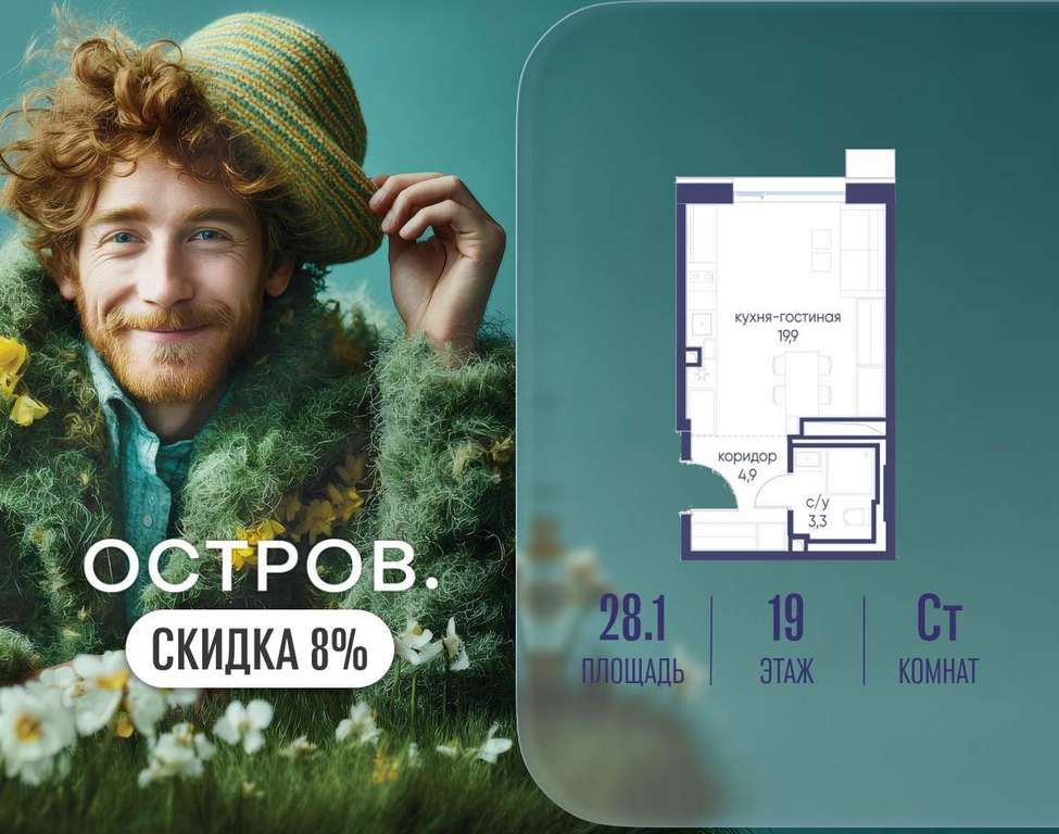 Продается квартира-студия от застройщика: общая площадь 28.10 м, жилая 15.00 м, кухня 4.90 м, 19-й этаж, жилой квартал «Гордость», корпус 40 (секция 1) . Срок сдачи: 2 квартал 2029 года.