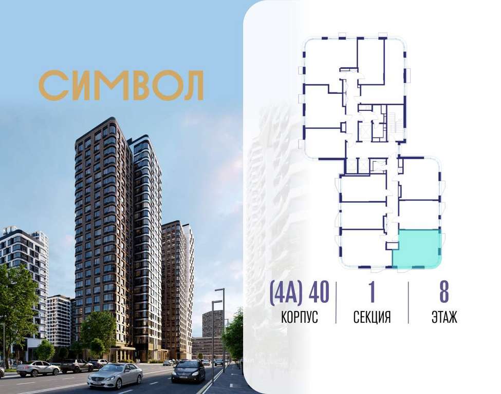 Продается 1-комнатная квартира от застройщика: общая площадь 36.90 м, жилая 16.00 м, кухня 14.70 м, 8-й этаж, жилой квартал «Гордость», корпус 40 (секция 1) . Срок сдачи: 2 квартал 2029 года.