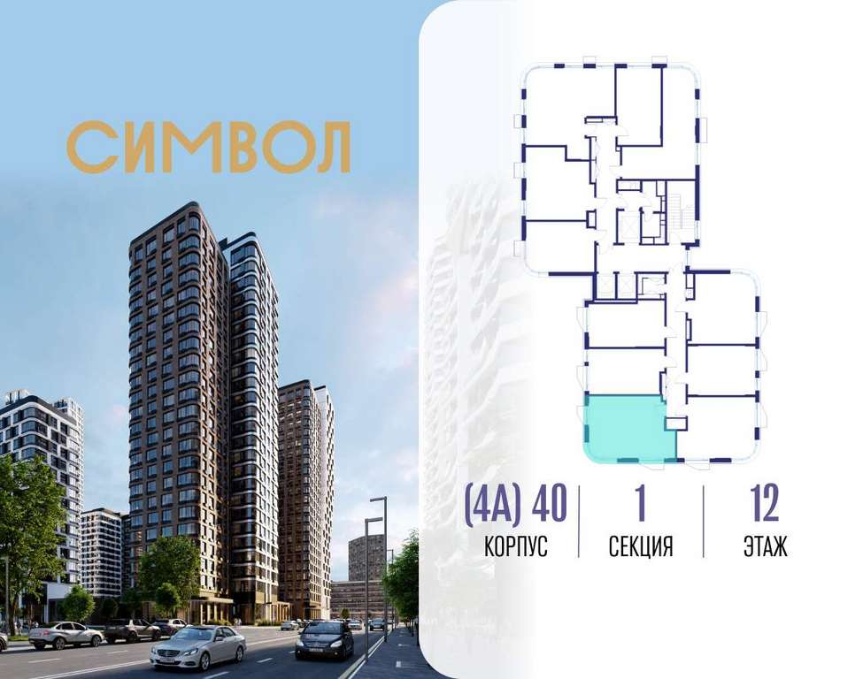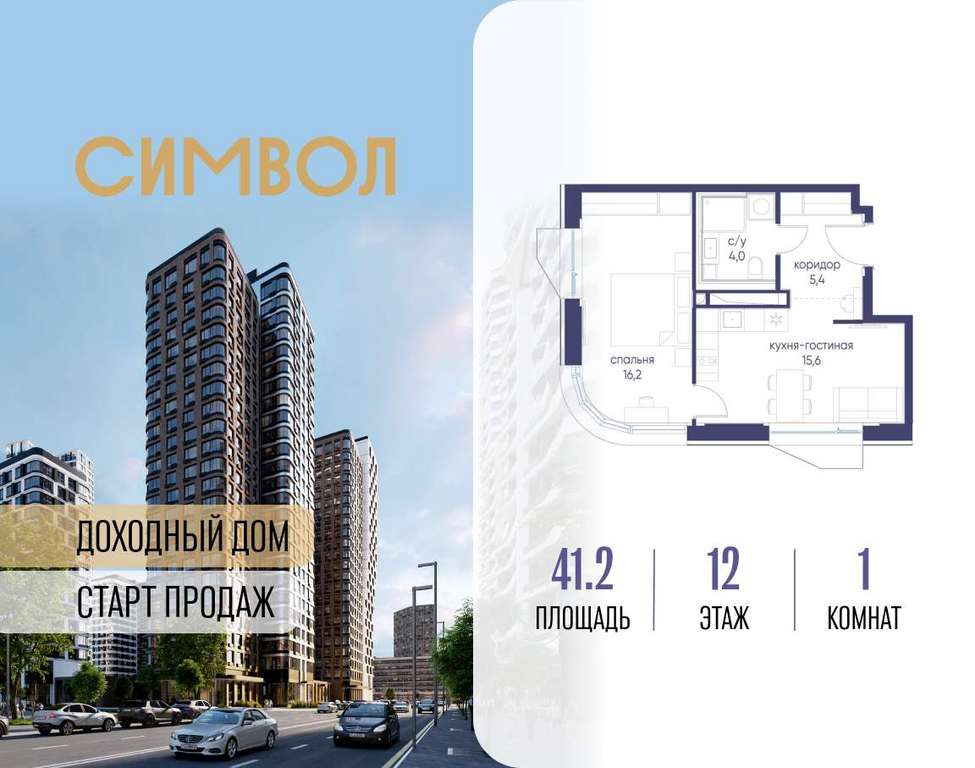Продается 1-комнатная квартира от застройщика: общая площадь 41.20 м, жилая 16.20 м, кухня 15.60 м, 12-й этаж, жилой квартал «Гордость», корпус 40 (секция 1) . Срок сдачи: 2 квартал 2029 года.
