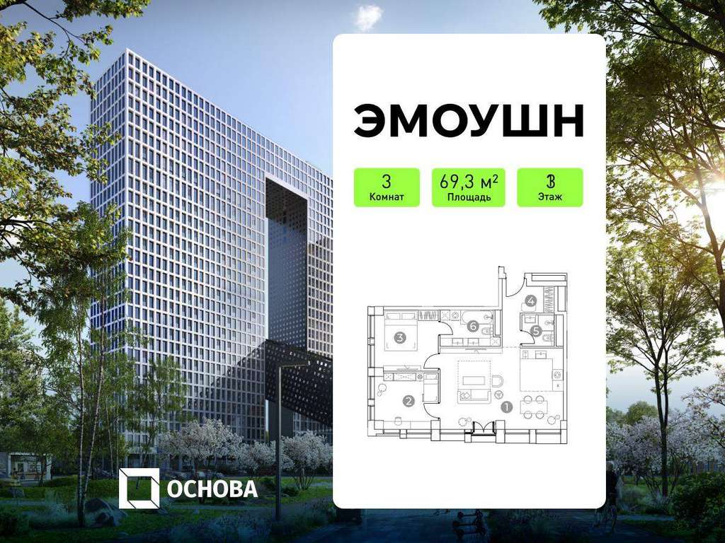 Продаются 3-к апартаменты площадью 69.3 кв. м. на 3-м этаже 28 этажного дома в "ЭМОУШН" от ГК ОСНОВА