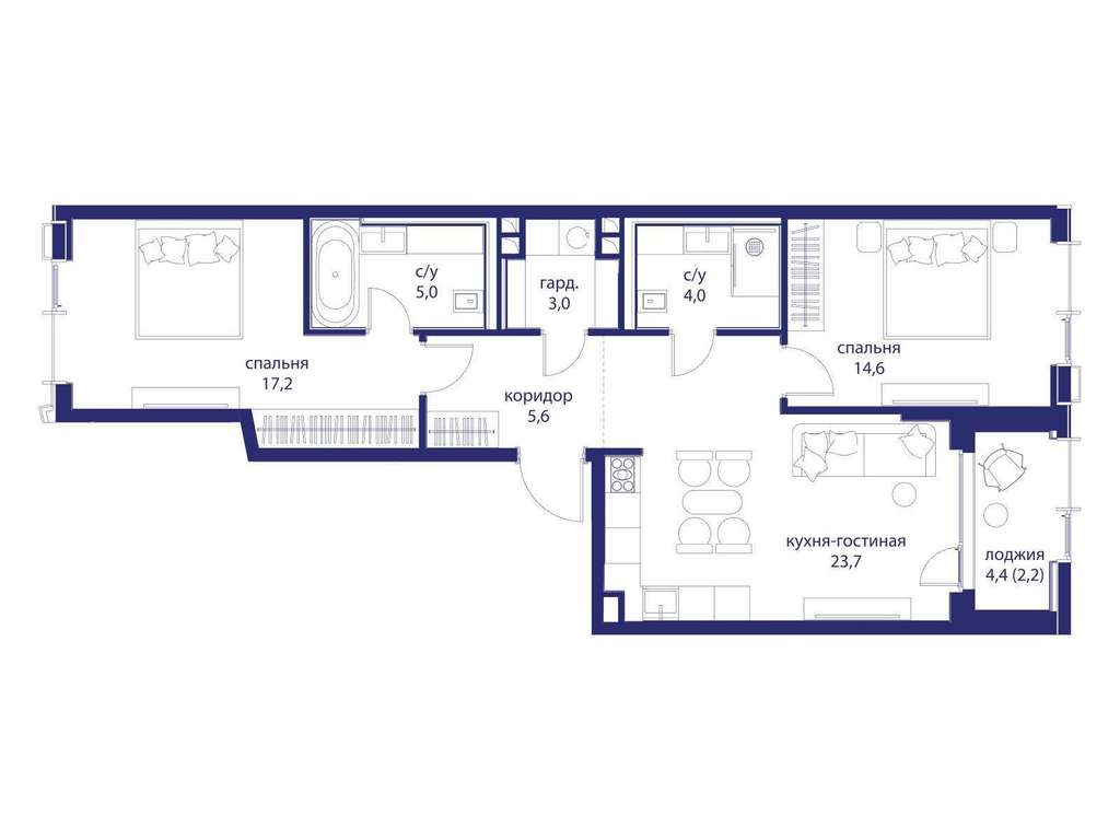 Продаётся 2-комнатная квартира от застройщика: общая площадь 75.40 м, жилая 31.80 м, кухня 23.70 м, 2-й этаж, жилой квартал «Событие-6», корпус 1 (секция 3) Срок сдачи: 4 квартал 2029 года.