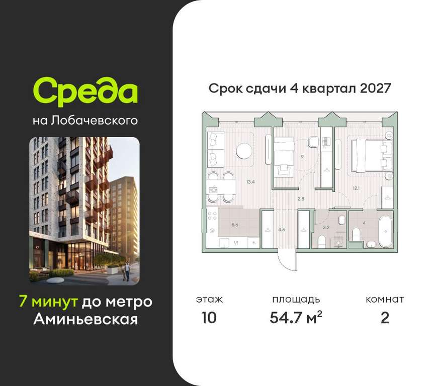 Застройщик - Среда, сдача дома - IV квартал 2027 года, высота потолков 2.92 м.
