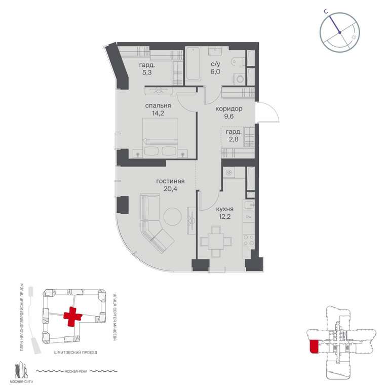 Жилой проект расположен в Пресненском районе Москвы. В пешей доступности находятся станции метро: «Улица 1905 года» (19 минут) , «Москва-Сити» (24 минуты) и «Деловой центр (Выставочная) » (25 минут) .