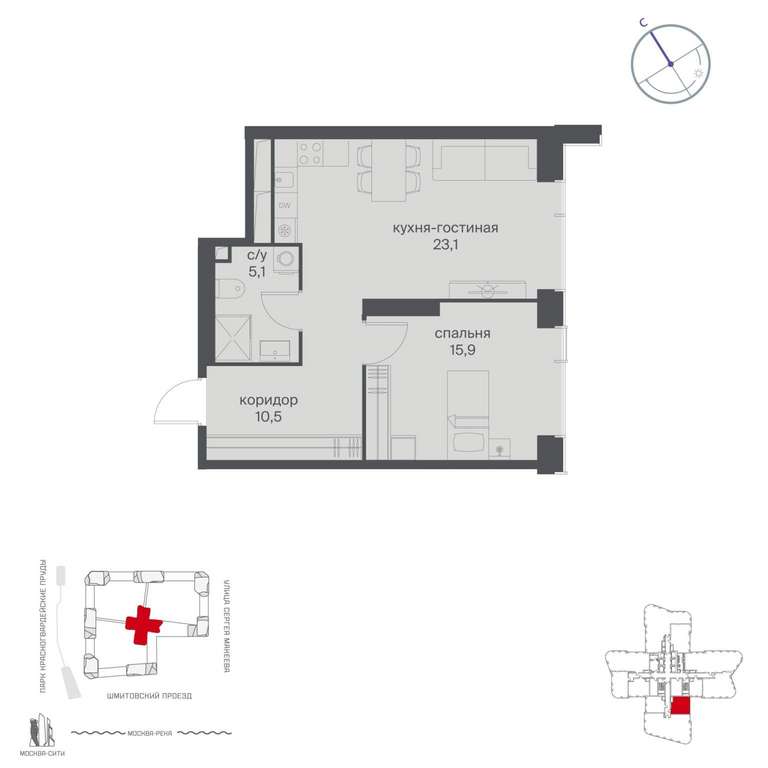 Жилой проект расположен в Пресненском районе Москвы. В пешей доступности находятся станции метро: «Улица 1905 года» (19 минут) , «Москва-Сити» (24 минуты) и «Деловой центр (Выставочная) » (25 минут) .