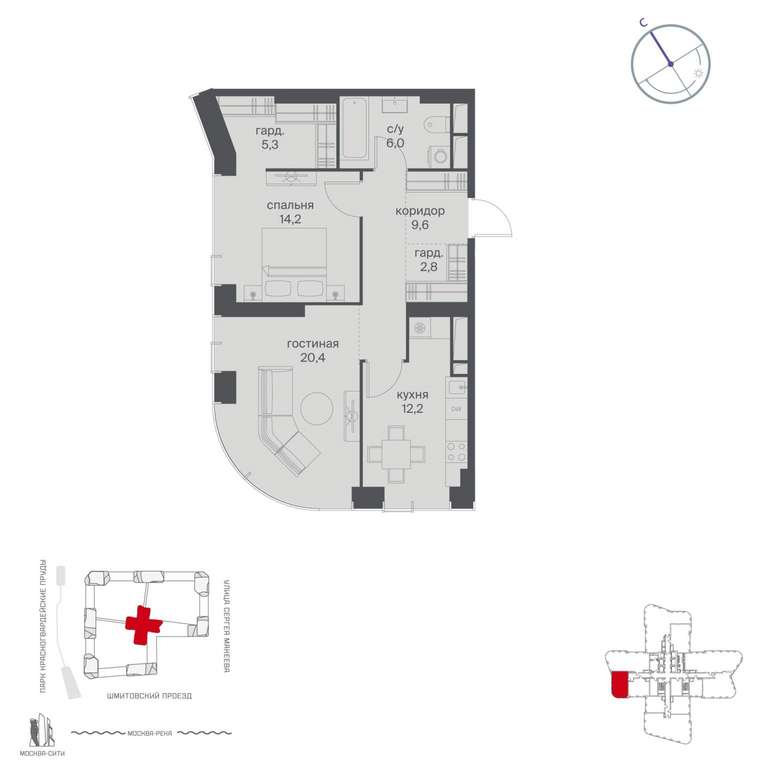 Жилой проект расположен в Пресненском районе Москвы. В пешей доступности находятся станции метро: «Улица 1905 года» (19 минут) , «Москва-Сити» (24 минуты) и «Деловой центр (Выставочная) » (25 минут) .