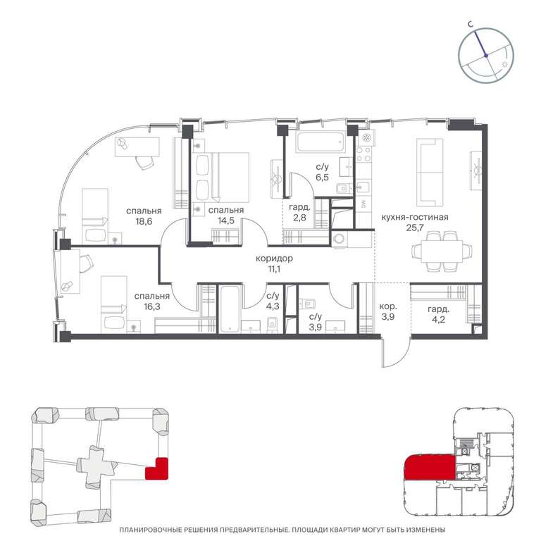 Жилая площадь 86 м2, кухня 25 м2, квартира без отделки, комнаты изолированные, совмещенных санузлов - 1, балконов - 1.