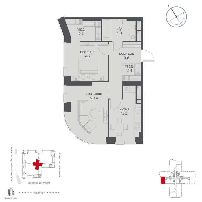 Жилой проект расположен в Пресненском районе Москвы. В пешей доступности находятся станции метро: «Улица 1905 года» (19 минут) , «Москва-Сити» (24 минуты) и «Деловой центр (Выставочная) » (25 минут) .