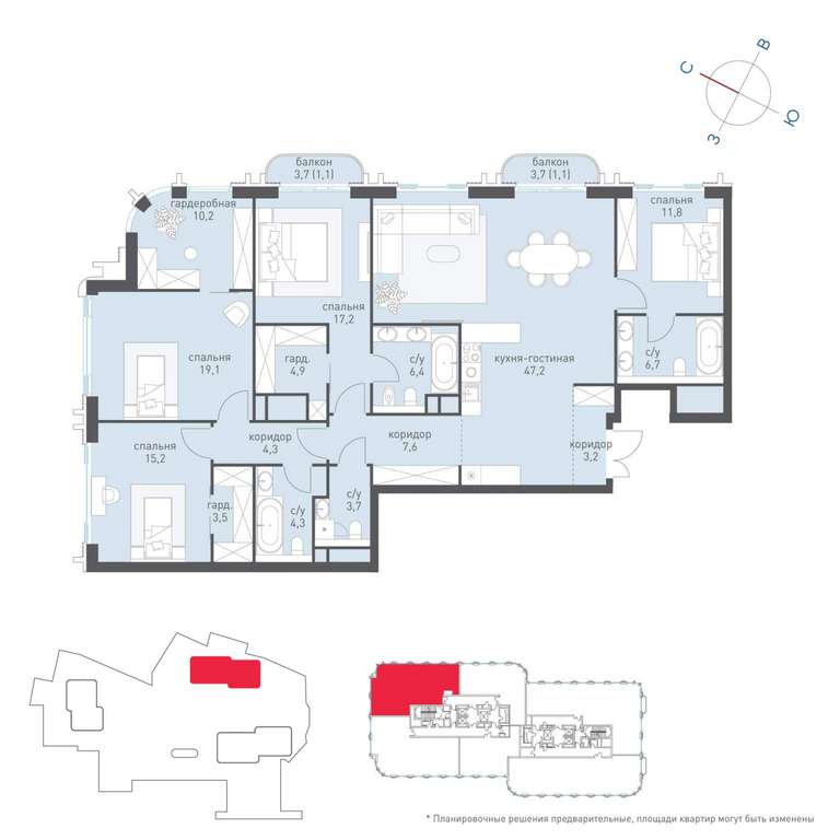 Жилая площадь 151 м2, кухня 19 м2, квартира без отделки, комнаты изолированные, совмещенных санузлов - 1, балконов - 1.