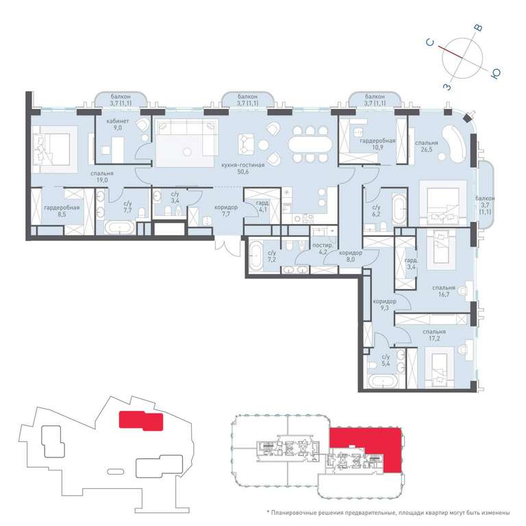 Жилая площадь 220 м2, кухня 10 м2, квартира без отделки, комнаты изолированные, совмещенных санузлов - 1, балконов - 1.