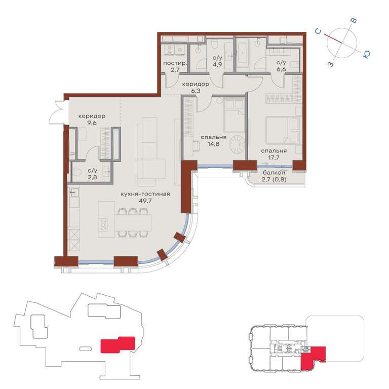 Жилая площадь 66 м2, кухня 49 м2, квартира без отделки, комнаты изолированные, совмещенных санузлов - 1, балконов - 1.