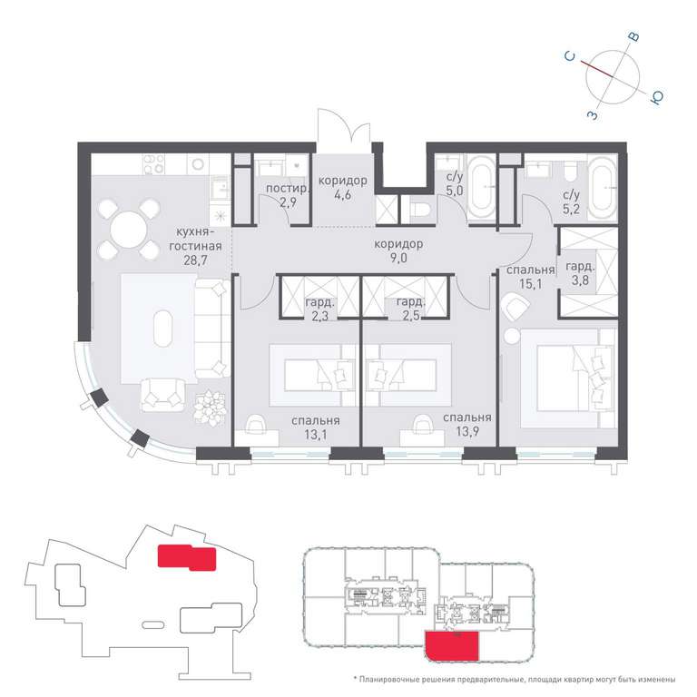 - Кол-во комнат