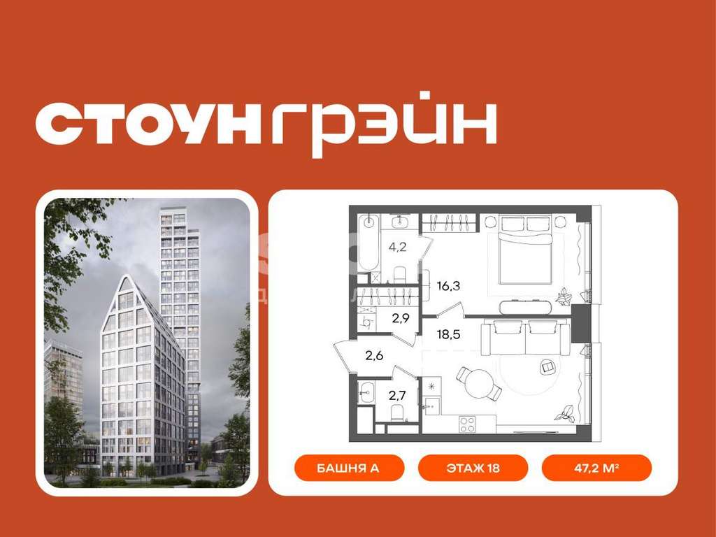 - 18 этаж в 45-этажном доме