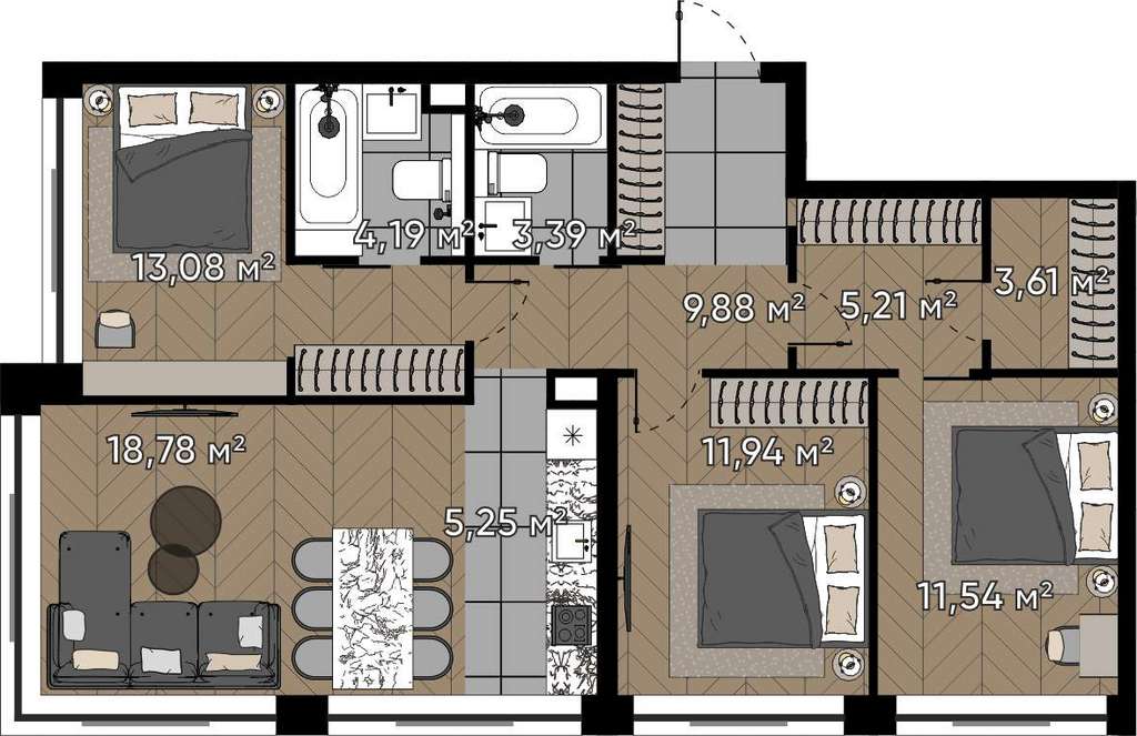 Квартиры с угловым остеклением - максимальный свет и панорамные виды на природу и город, создающие атмосферу свободы и комфорта.