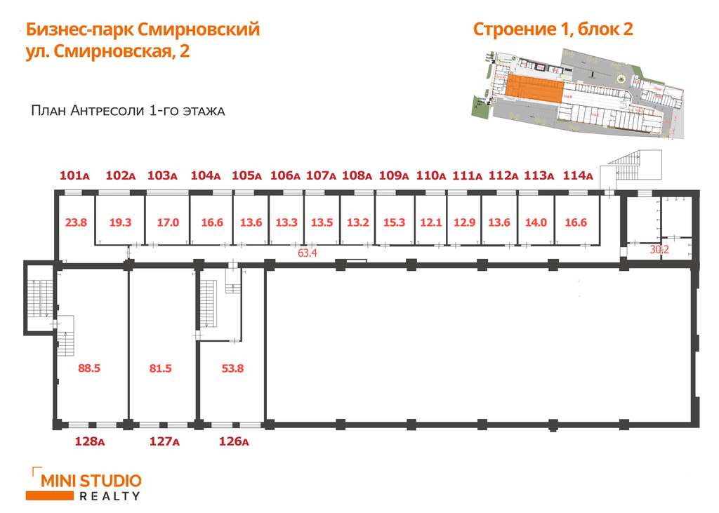 Выгодное вложение для вашего бизнеса! Помещение свободного назначения 12,9 м2 в Бизнес-парке "Смирновский" (лот 111а на плане)