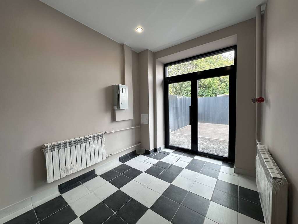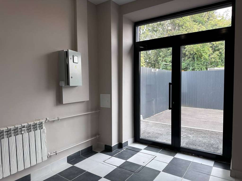 Помещение с полной отделкой. Высота потолков 4 м. Комнат в помещении - 1, одна мокрая точка, тип окон - витринные, окна выходят окна во двор.