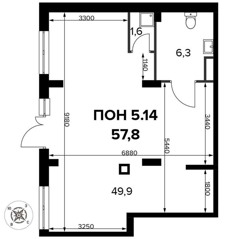 - 57.90 м2