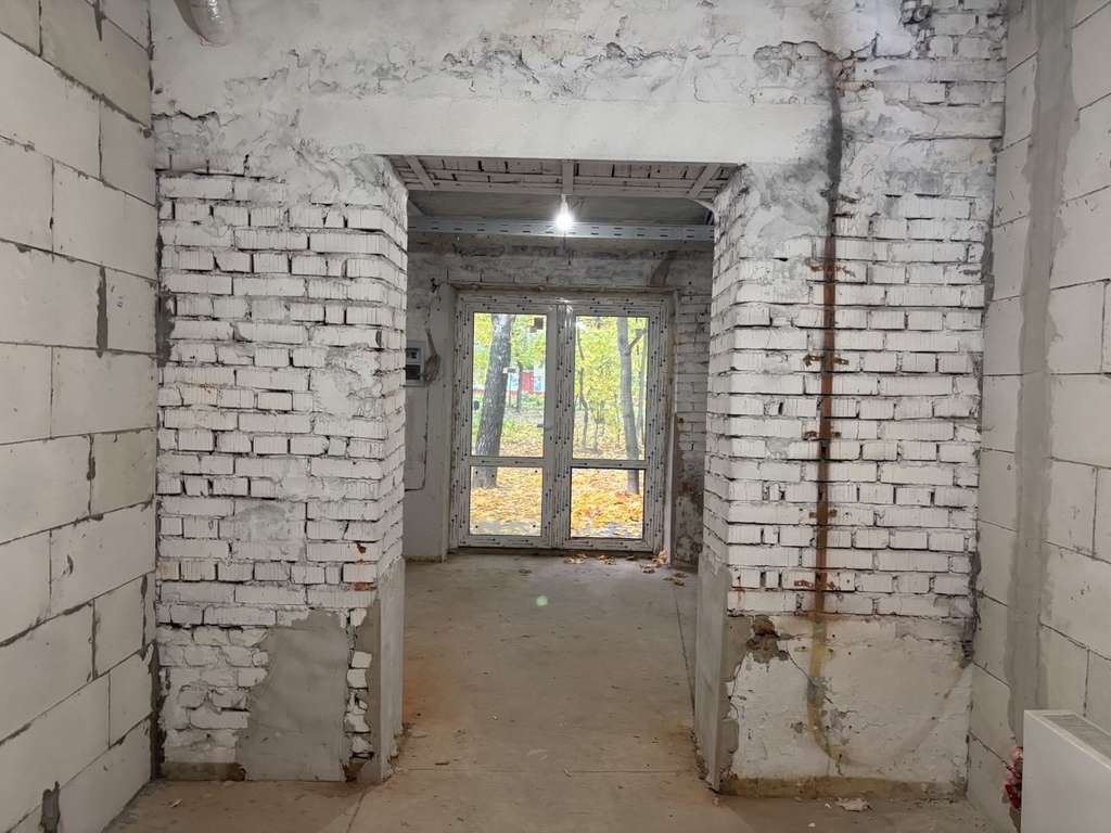 Помещение под чистовую отделку. Установлены: качественная входная дверь, вытяжная вентиляция, радиатор отопления, электросчетчик, автомат на 5 кВт, выходы хв/гв.