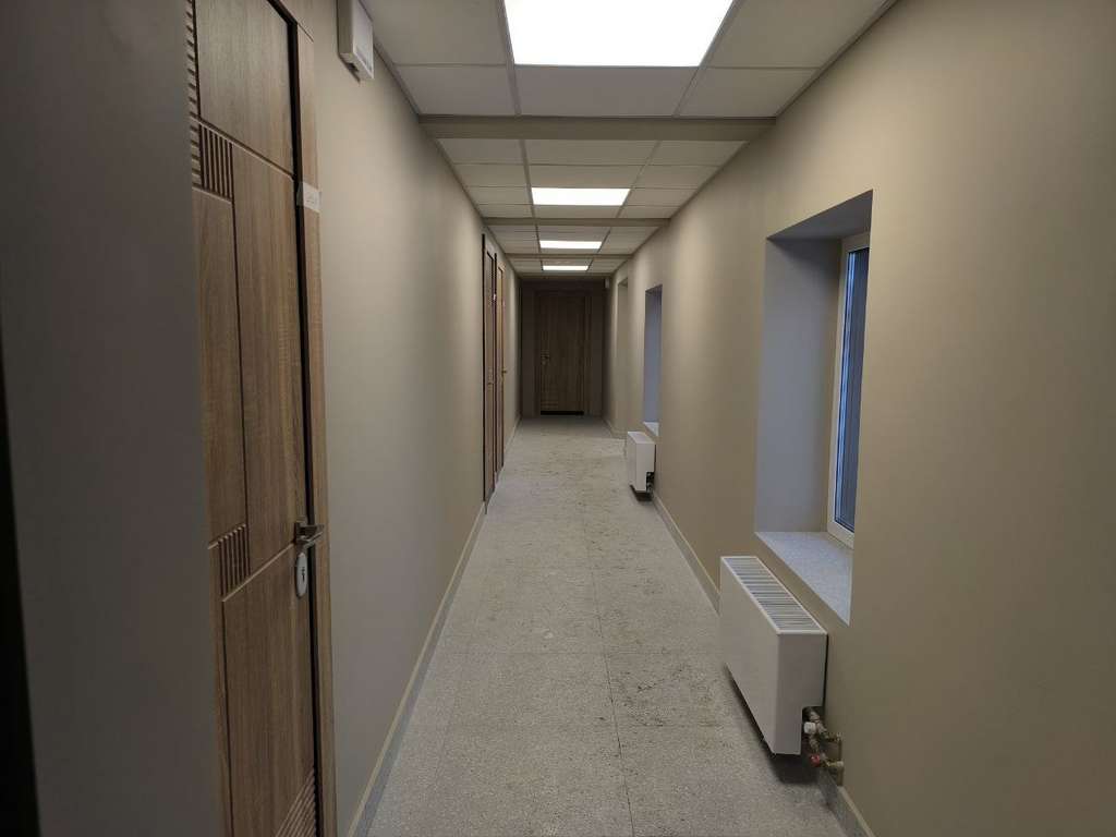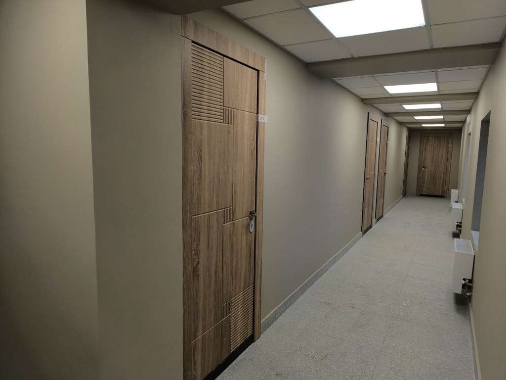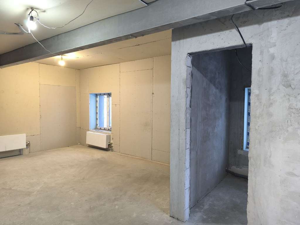 Помещение уже разделено на 5 отдельных комнат с окнами, в каждой есть мокрая точка.