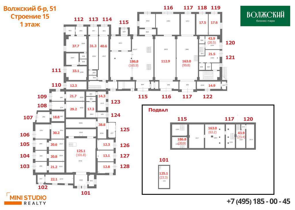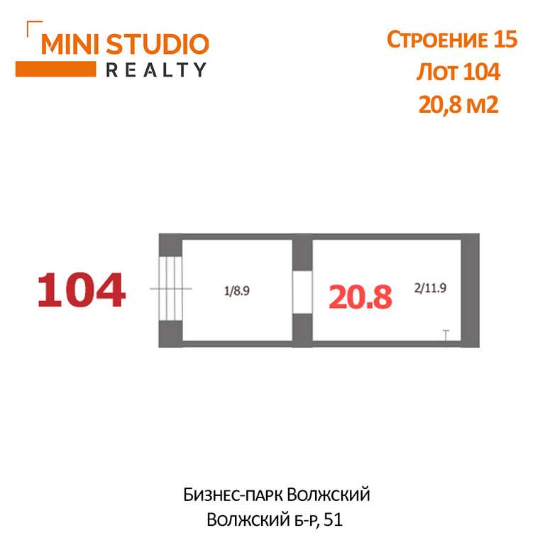 Помещения под чистовую отделку: мини-офис или торговая точка. Лот 104 на плане, расположен в корпусе 15 на 1-м этаже. Установлены: качественная входная дверь, вытяжная вентиляция, радиатор отопления, электросчетчик, автомат на 5 кВт, выходы хв/гв.
