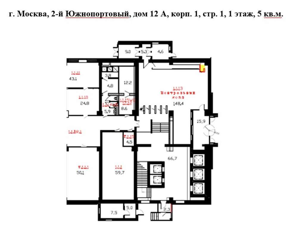 Нежилое помещение общей площадью: 7 кв. м.